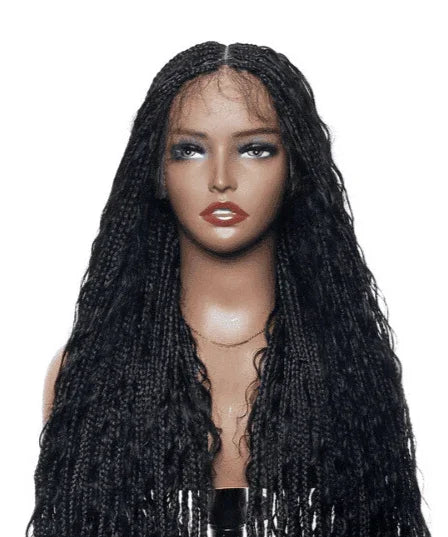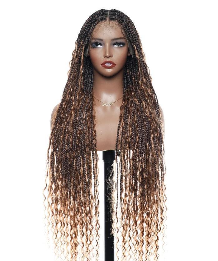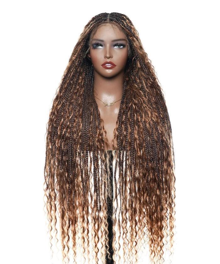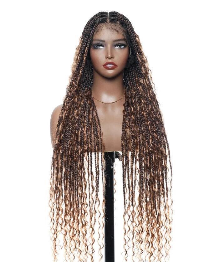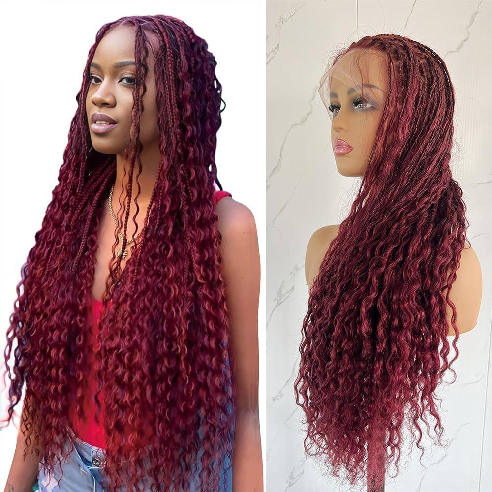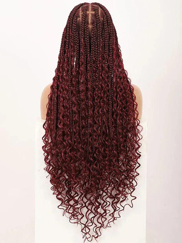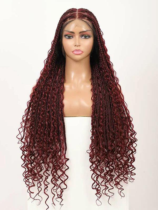 Deep Curly Boho Knotless Braided HD Full Lace Wig Gradient Burgundy