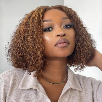 Highlight Ombre Glueless Curly Short Wigs 100% Human Hair