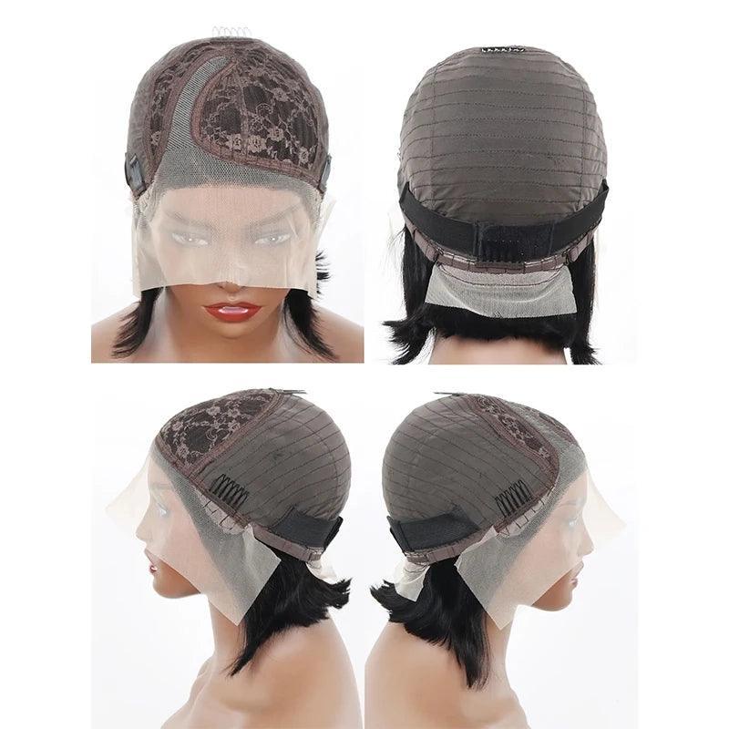 Frontal Glueless Wigs Human Hair:Our Bob Wig Human Hair 13x4 Frontal Lace Wig Have Large Space and Deep Parting of Lace,According to Your Like, can do any Side Part or Middle Part .