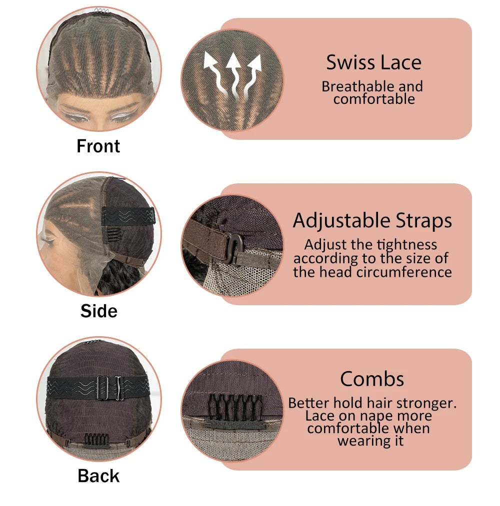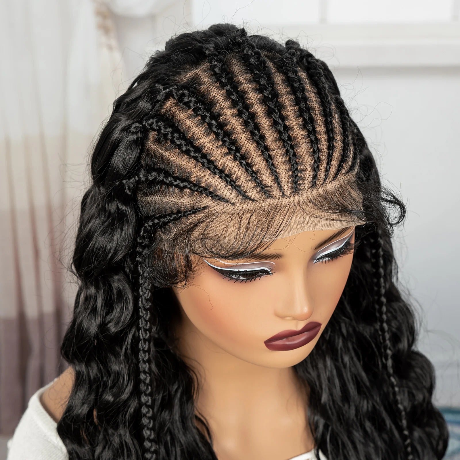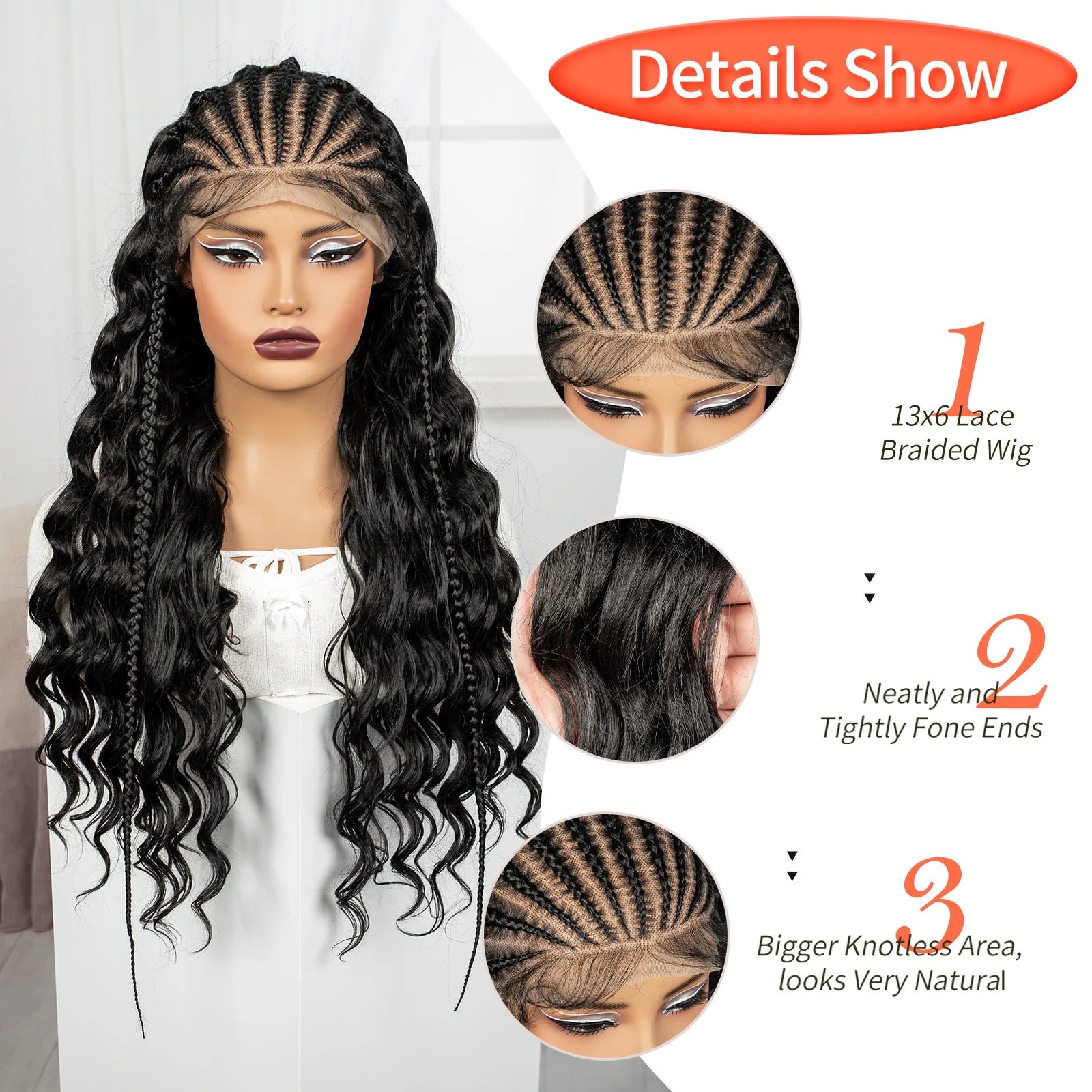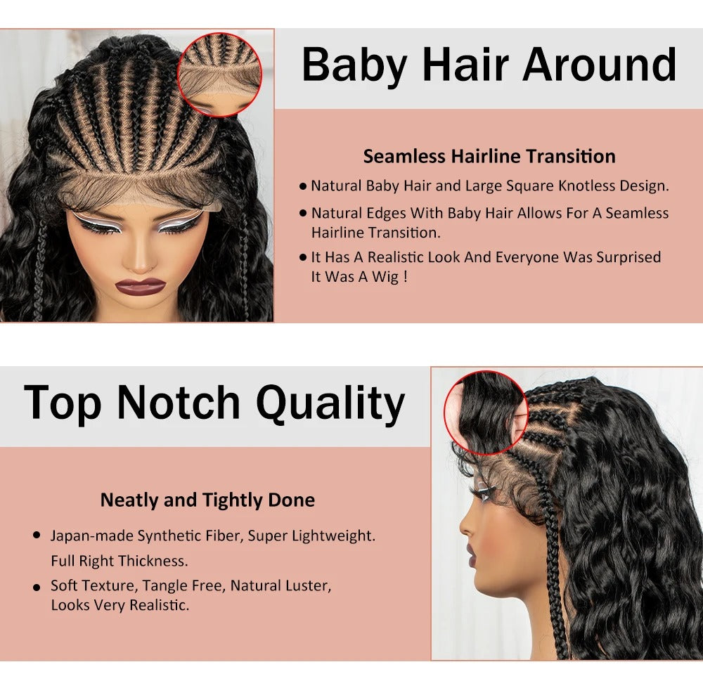 13x6 HD Lace Front Deep Wave Hair Wigs with Cornrow Braids