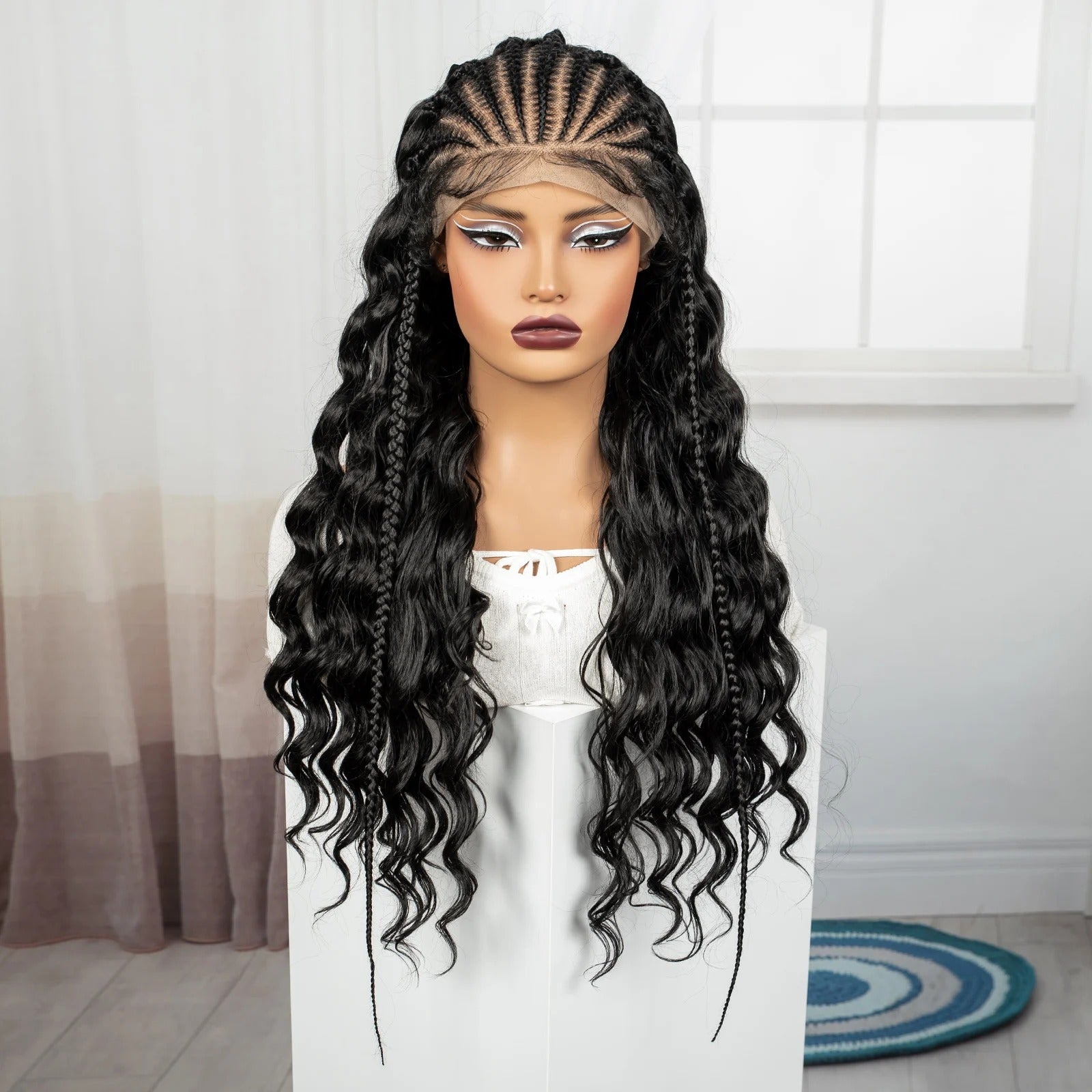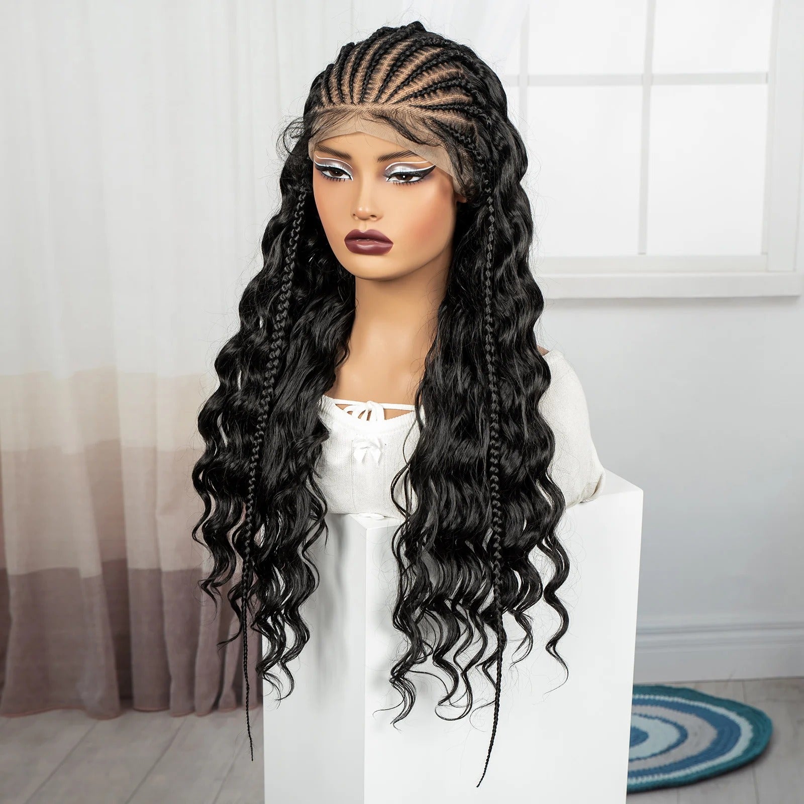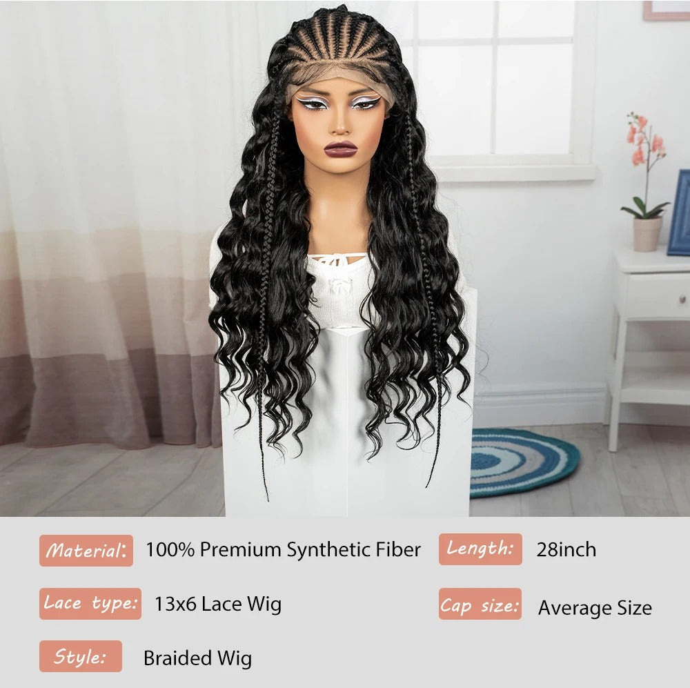 13x6 HD Lace Front Deep Wave Hair Wigs with Cornrow Braids