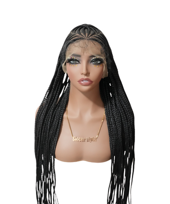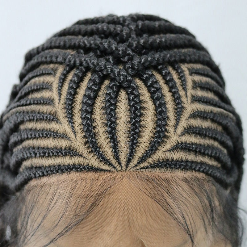 Hair Style: Hand-tied Deep Wave Hair Wigs with Cornrow Braids HD Full Lace Wig T2