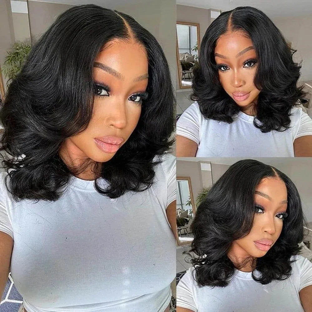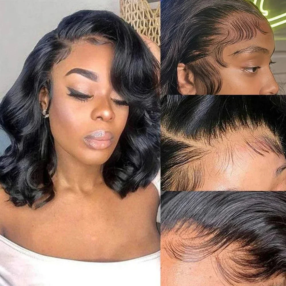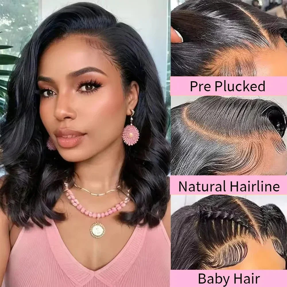 Left C Part Body Wave Bob Wig Glueless 4x4 Closure HD Lace Wig Human Hair Pre-Cut Lace
