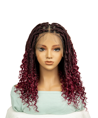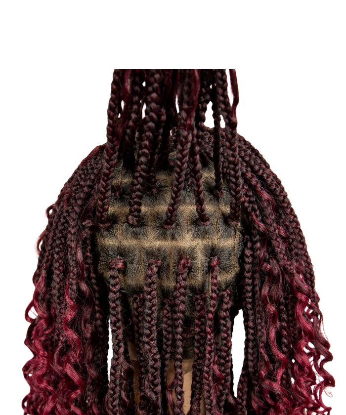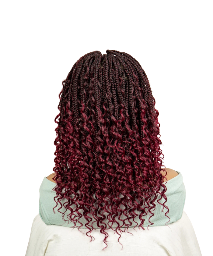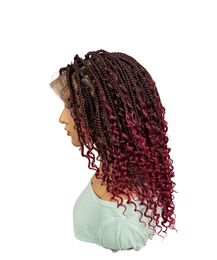 Hair Style: Short HD Full Lace Boho Box Braided Wig With Human Hair Burgundy