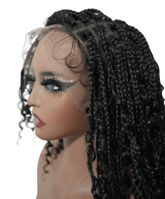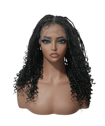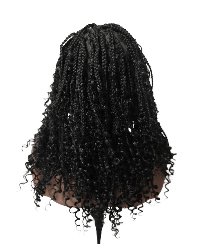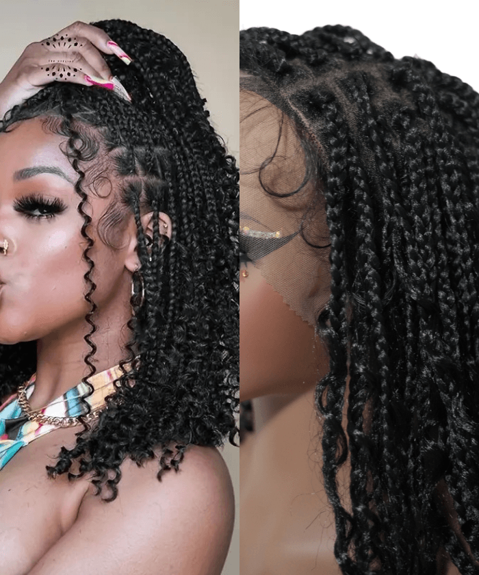 Hair Style: Short HD Full Lace Knotless Boho Box Braided Wig With Human Hair Natural Black